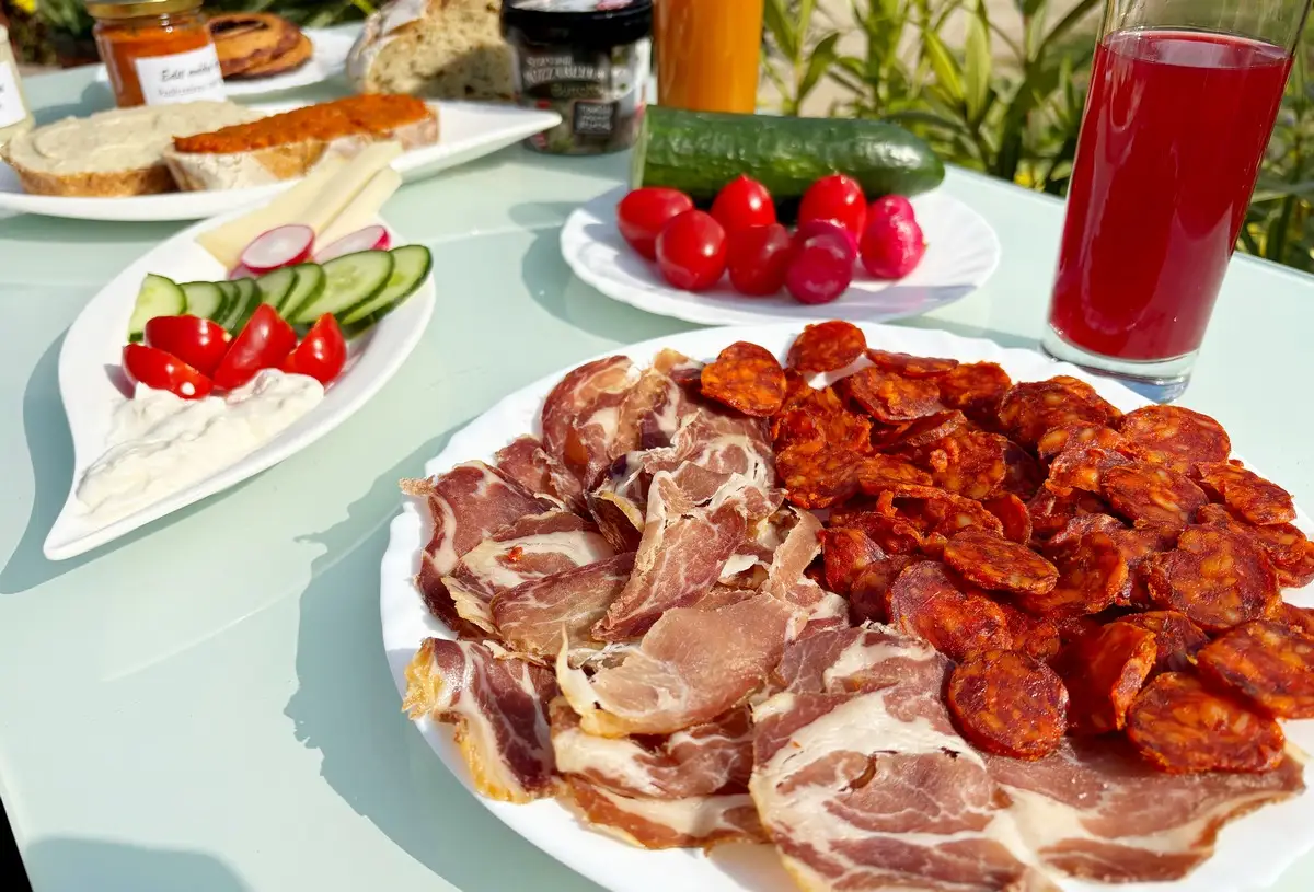 A Szarvasi Ízek – Gasztro Élménycsomagot simán 3–4 napig ettük, és még így is maradt belőle, sőt, a maradékot hazavittünk magunkkal. Pedig egyáltalán nem spóroltunk vele: rendesen reggeliztünk, napközben is nassoltunk kicsit, és néha este is ettünk belőle ezt-azt a teraszon, társasozás közben.